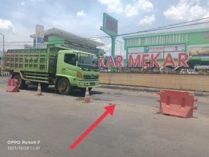 “Mulai pertigaan lampu merah barat balai desa Karangrejo sampai timur perlintasan rel kereta api masih belum di perbaiki, hanya di depan pabrik kecap yang dulu tampak menonjol sudah discrub (kepras) dan ditambal. Anehnya Jalan depan koperasi mekar, depan garasi truk GG yang sangat tampak nyata rusaknya dan lokasi sidaknya Bupati kok malah belum diperbaiki sampai sekarang,” ucapnya, Kamis (28/10/2021).
