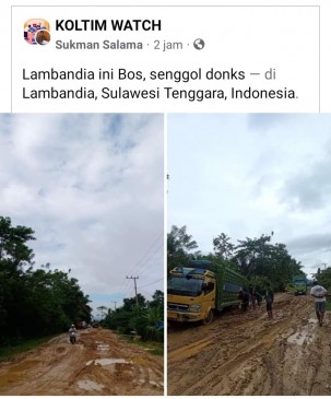 “Lambandia ini bos, senggol donks,”demikian caption ditulis akun Sukman Salama, seraya menampilkan dua foto yang menampilkan bagaimana kondisi jalan Lere Jaya.