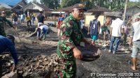Pasca Kebakaran Danramil 01/Pc. Soal Pimpin Anggota Bersihkan Puing-Puing Sisa Kebakaran