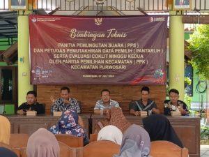 Bimtek Pantarlih Pemilihan Gubernur dan Wakil Gubernur Jawa Timur serta Bupati dan Wakil Bupati Kabupaten Bojonegoro Tahun 2024, dilaksanakan PPK Purwosari di pendopo Kecamatan Purwosari, dihadiri oleh ketua dan anggota PPS Se-Kecamatan Purwosari serta satu perwakilan Petugas Pantarlih per desa, sebagaimana undangan yang disampaikan ketua PPK Purwosari Zaenal Abidin S.H pada, (06 Juli 2024).