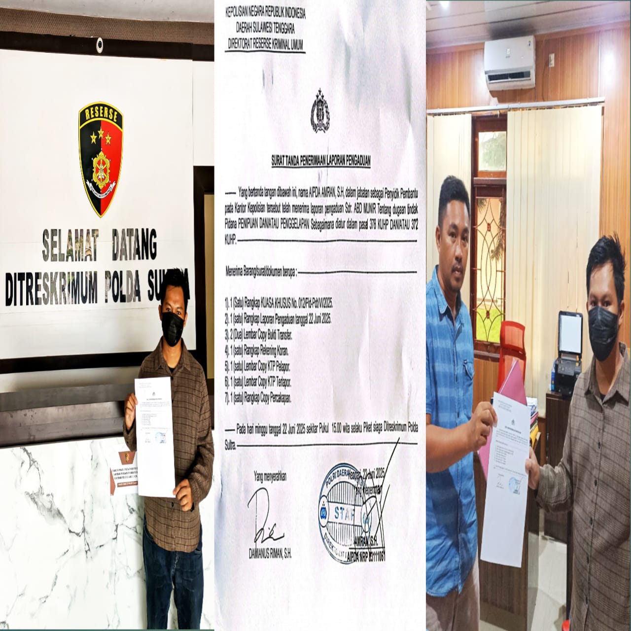 “Berikutnya, beberapa waktu dihubungi melalui telepon biasa tetapi sudah tidak dapat tersambung. Ditelepon melalui WhatsApp, aktif tetapi tidak angkat (sengaja tidak dijawab). Beberapa bulan kemudian coba dihubungi lagi, tapi sudah sama sekali tidak bisa dihubungi melalui WhatsApp. Nomor sambungan telepon klien kami telah diblokir. Sehingga komunikasi terputus total dan teradu tidak menunjukkan itikad baiknya. Klien kami kecewa dan lalu melaporkan peristiwa dugaan penipuan dan penggelapan ini ke Polda Sultra,” ungkap Damianus seraya berharap agar pihak kepolisian dapat mengusut pengaduan mereka hingga tuntas.